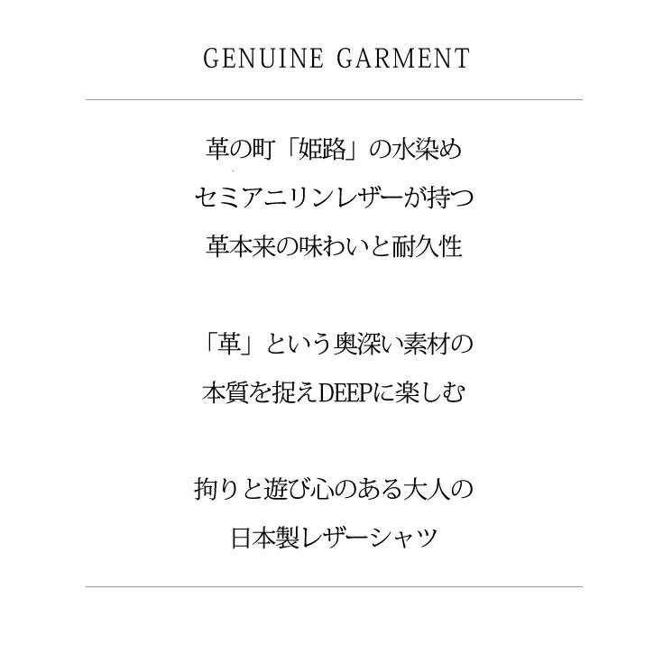 シャツとしての着あわせやシャツジャケットとしてアウターにもでき、いつものおしゃれに幅と高級感が足される秀逸な日本製レザーシャツです。